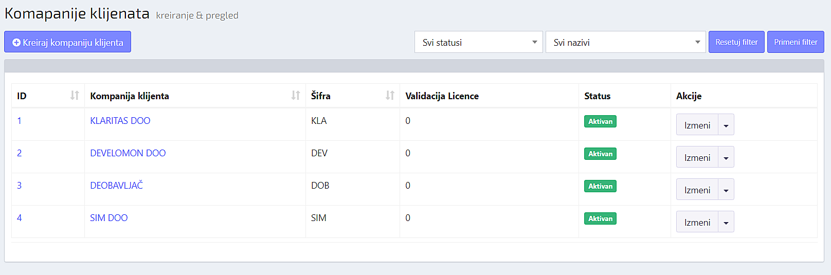 Napomenućemo da je za svaku kompaniju klijenta potrebno kreirati i po jednog korisnika sa korisničkom rolom Client.