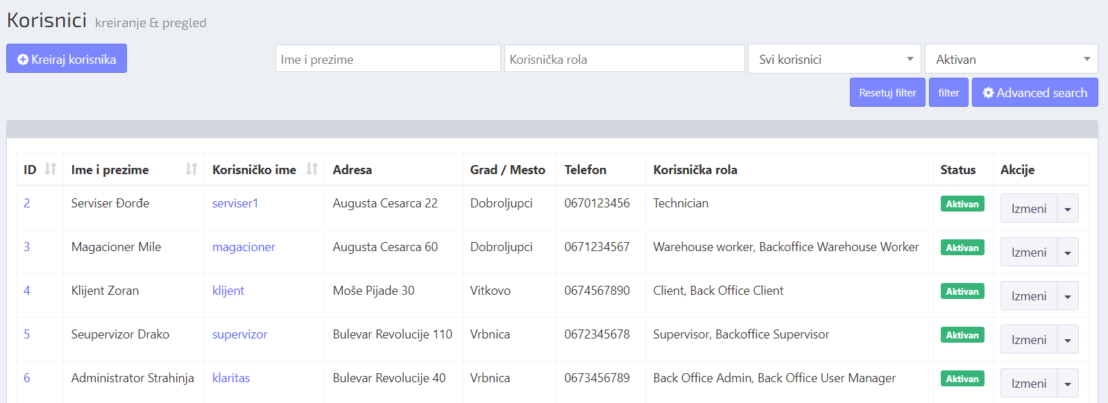 Kreirajte korisnike koji su Vam potrebni: magacioner, supervizor, tehnička podrška …