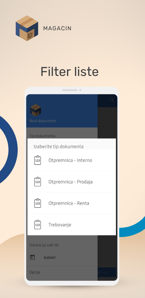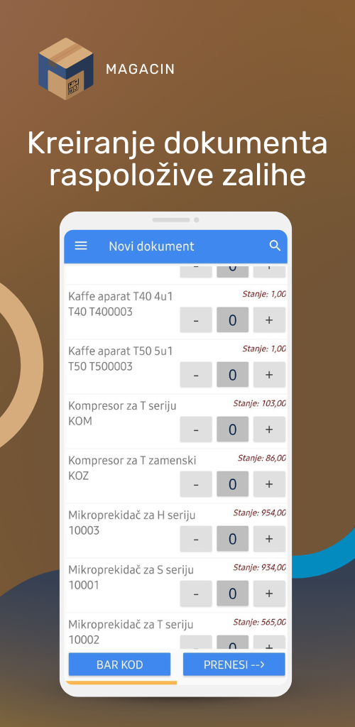 - Informacije o artiklima - kroz aplikaciju artikal nosi dodatne informacije (serijski broj, inventarni broj, komentar magacionera, sliku …).