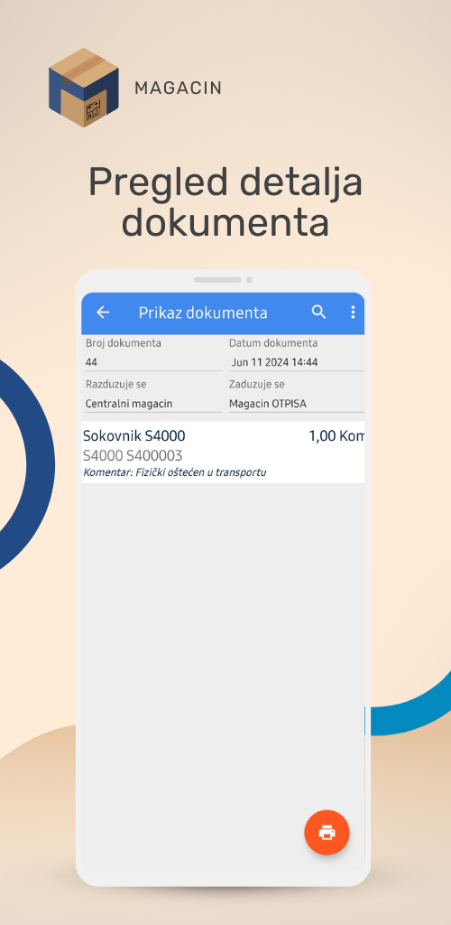 - Štampa - štampa se vrši direktno iz android aplikacije bez direktne veze sa štampačem (USB, mrežne, WiFi konekcije).