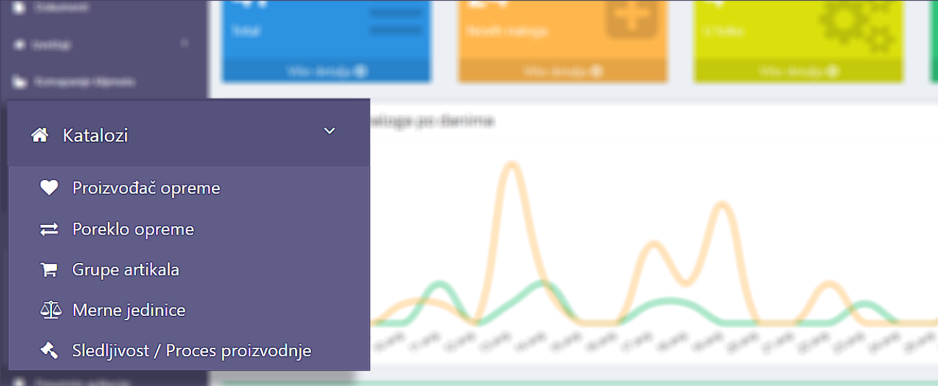 Klikom na polje “Katalozi”, u meniju sa leve strane, otvara se padajući meni sa opcijama za kreiranje: